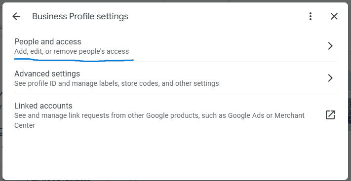 - Click Menu Business Profile settings Managers.